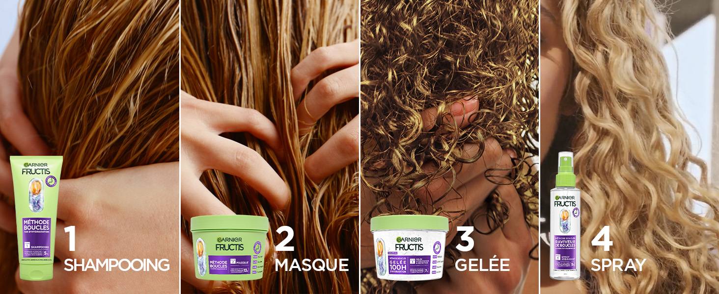 Pour les hydrater et les définir sans les figer, nous vous recommandons d’appliquer notre nouveauté : la gelée Méthode Boucles. Pour retrouver vos boucles souples, définies et brillantes, sruncher ensuite vos boucles avec le Spray Définition Méthode Boucles