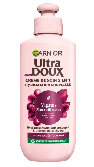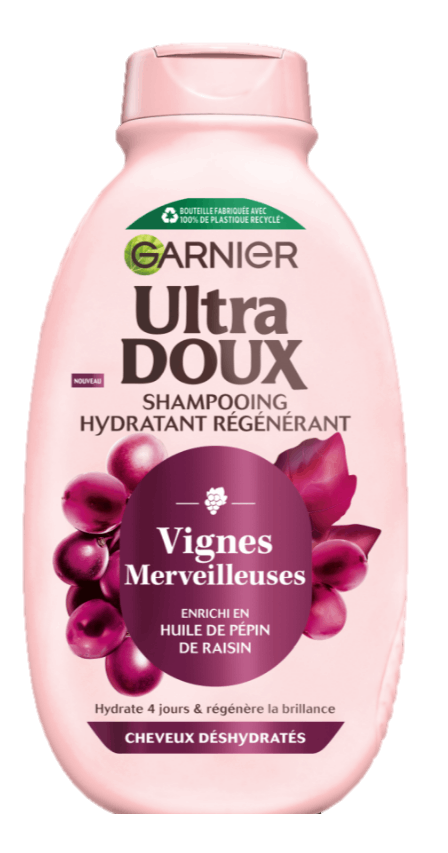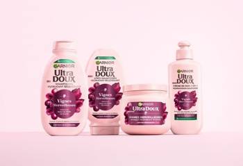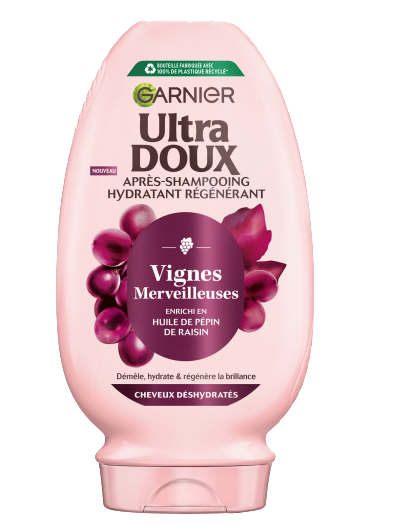 Riche en eau et protégé par des antioxydants, le raisin résiste aux agressions extérieures et conserve longtemps son éclat. Ultra Doux s'inspire des vignes pour créer une nouvelle gamme de soins pour les cheveux déshydratés, exposés quotidiennement à des agressions telles que le brossage, le coiffage avec des appareils chauffants ou les rayons UV.