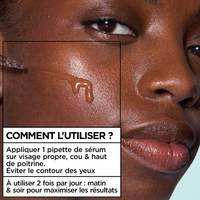 Appliquer 1 pipette de sérum sur visage propre, cou & haut de poitrine. A utiliser 2 fois par jour: matin & soir pour maximiser les résultats.
